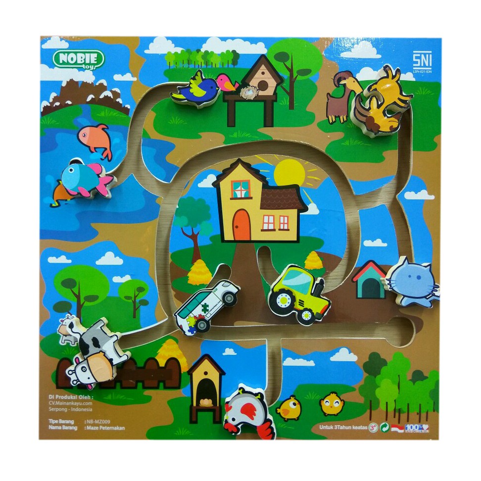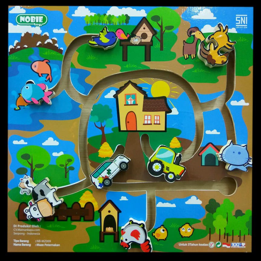 Maze Peternakan Mainan Edukatif Edukasi Anak Sni Kayu Ape Paud Tk