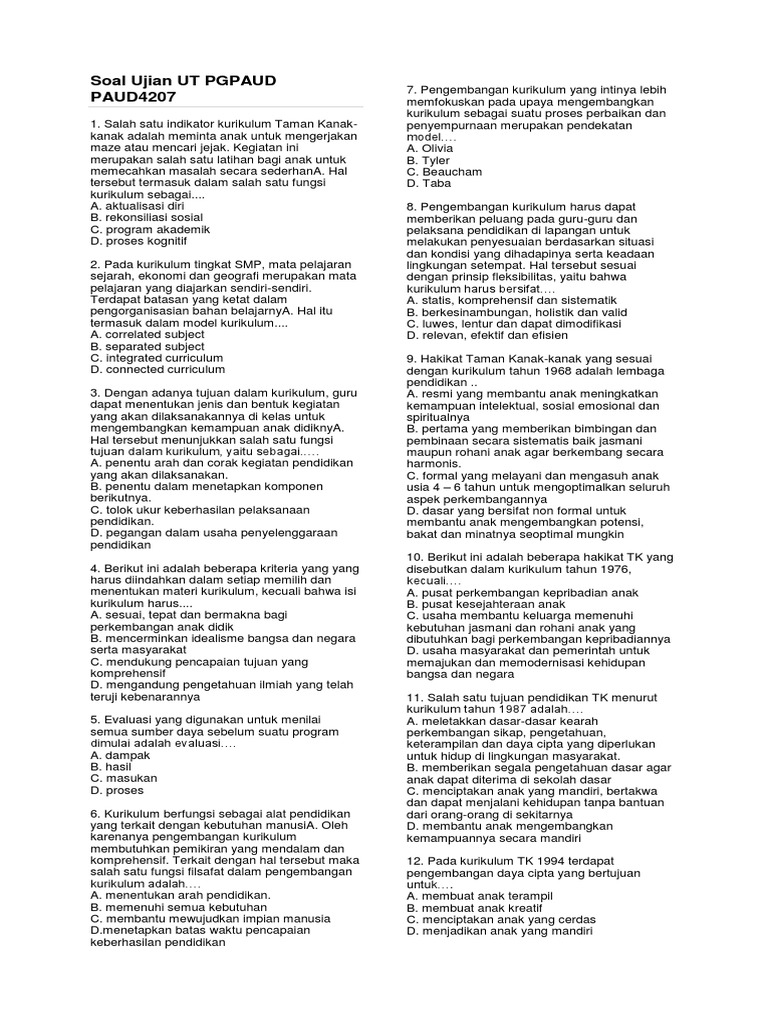 Soal Ujian Ut Pgpaud Paud4207 1
