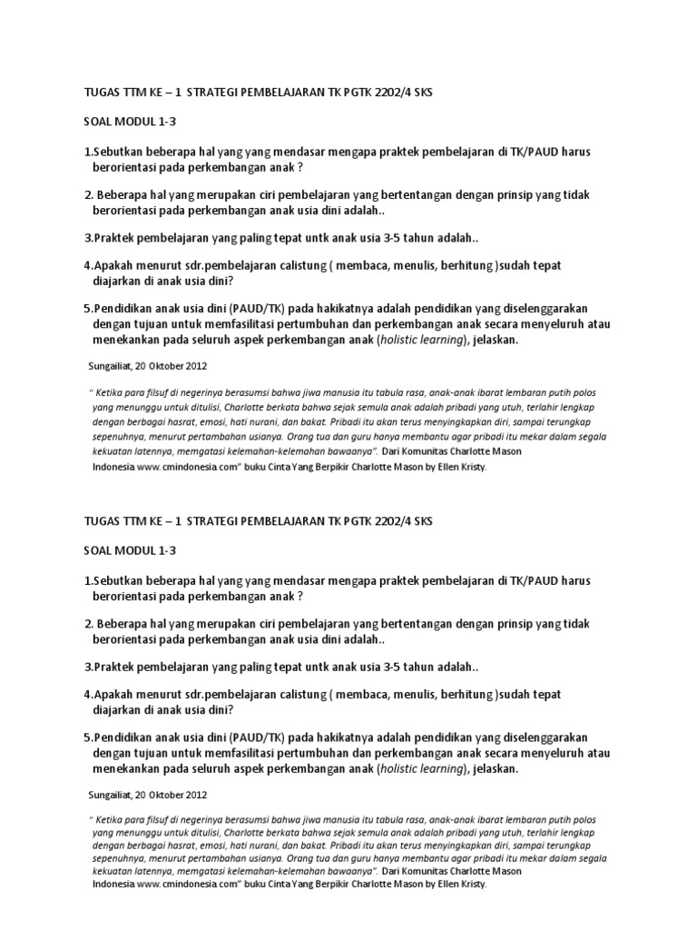 Tugas Ttm Ke 1 Strategi Pembelajaran Tk