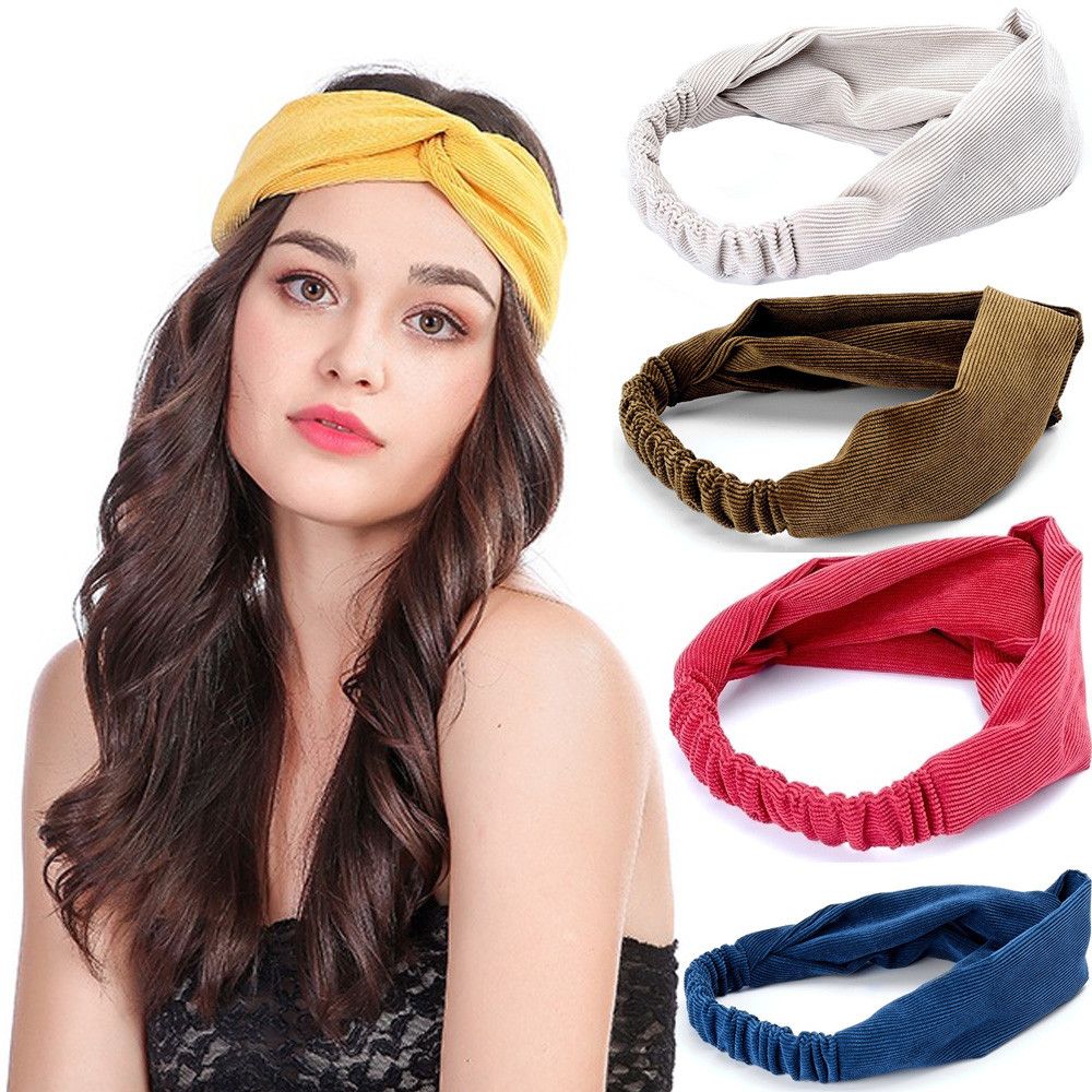 Female Headbands For Women Yoga Solid Workout Cute Vintage Knotted Cross Hairbands Stretchy Hair Accessories Decro