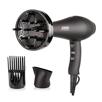 Jinri 1875w Professional Salon Hair Dryer Ionic Infrared Blow Hair Dryer With Diffuser Concentrator Attachments For Curly Hair Black