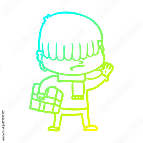 Cold Gradient Line Drawing Cartoon Boy With Untidy Hair
