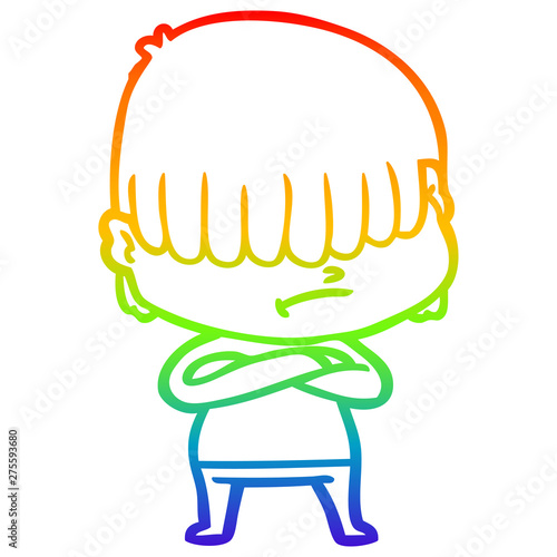 Rainbow Gradient Line Drawing Cartoon Boy With Untidy Hair