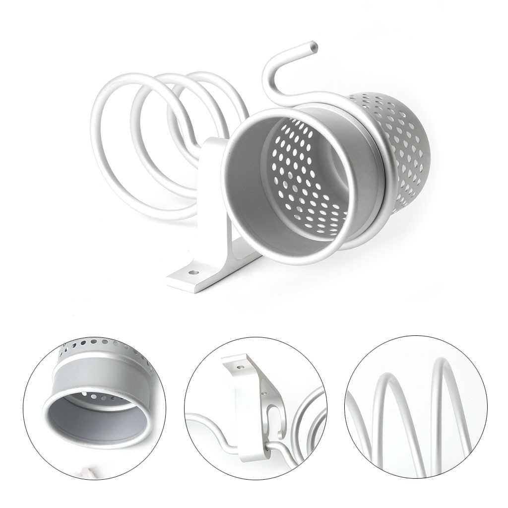Lmeison Wall Mounted Hair Dryer Holder Aluminum Hair Dryer Hanging Rack Organizer Spiral Hair Care Tools Blow Dryer Holder With 2 Cups For Flat Iron