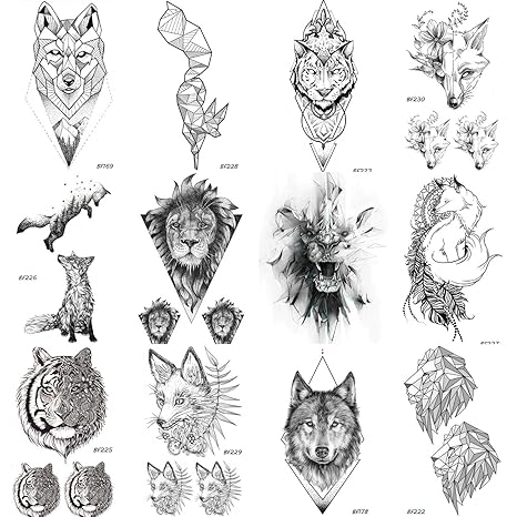 12 Pieces Lot Geometry Pencil Sketch Lion Fox Design Water