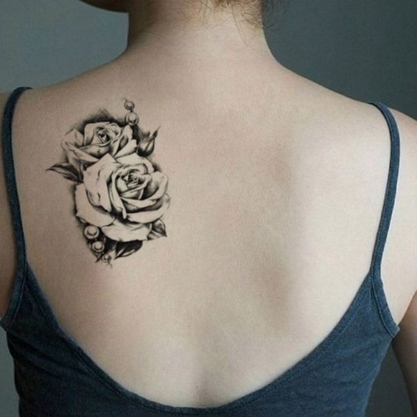 New Sketch Rose Waterproof Fake Tattoo For Women Men Temporary Tattoo Sticker For Back Boys Temporary Tattoos Butterfly Temporary Tattoo From