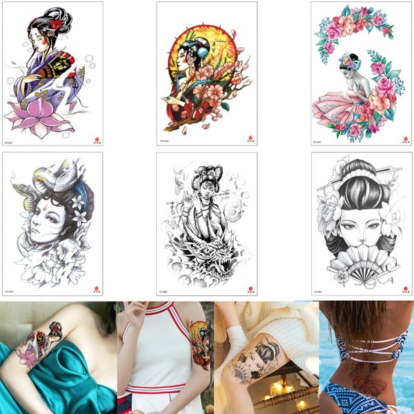 Beauty Women Tattoo Sticker Waterproof Tenporary Classical Geisha Snake Lady Ballerina Decal Body Tattoo Designs Cool Colored Drawing Person Fashion