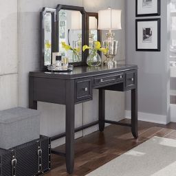 Shop for bedroom vanity tables for the bedroom online at coleman furniture. You may not be a hollywood star but applying makeup while seated at a vanity table is certain to make you feel like one. This vanity is well made of hardwood solids and engineered wood finished in a multi step hand distressed black.