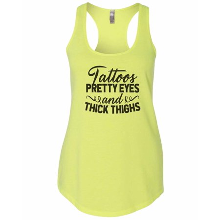 Women S Cute Flowy Tattoo S Pretty Eyes Thick Thighs Workout Tank Top X Large Neon Yellow