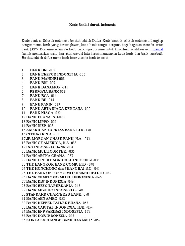 Daftar Kode Bank Di Indonesia Untuk Paypal Indonesiapal