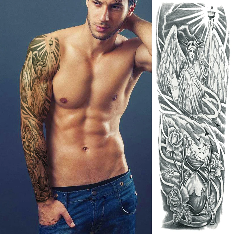 Us 2 06 20 Off Temporary Tattoo Full Arm Sleeve Large Arm Sleeve Tattoo Waterproof Big Men Shoulder Tattoos Greek Gods Mythology Stickers Body In