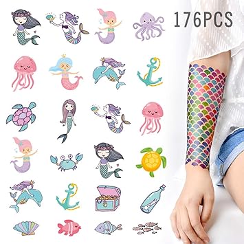Kreatwow Mermaid Tattoos Temporary For Kids Mermaid Scale Temporary Tattoo 176pcs