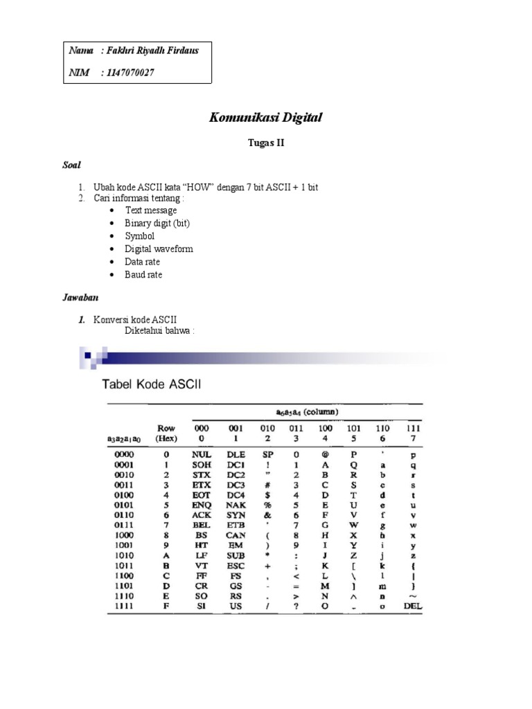 Sog pa dette website. Namun ascii disimpan sebagai sandi 8 bit dengan menambakan satu angka 0 sebagai bit significant paling tinggi.